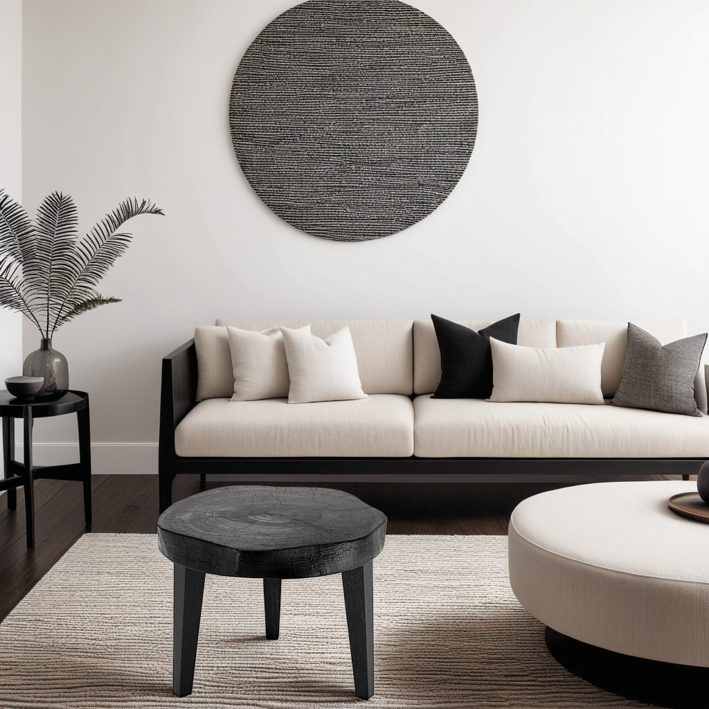 Um die Eleganz Ihres Modern Japandi Black Live Edge Wood Low Table zu erhalten, wischen Sie ihn regelmäßig mit einem weichen, feuchten Tuch ab und vermeiden Sie scharfe Chemikalien oder scheuernde Materialien. Die schwarz lackierte Oberfläche bietet einen zusätzlichen Schutz, aber es ist dennoch wichtig, den Tisch vor direkter Sonneneinstrahlung und übermäßiger Feuchtigkeit zu schützen. Als zusätzliche Pflegemaßnahme sollten Sie in regelmäßigen Abständen ein Pflegemittel für Massivholz auftragen, um die natürliche Integrität des Holzes zu erhalten und seine dauerhafte Schönheit zu verbessern.