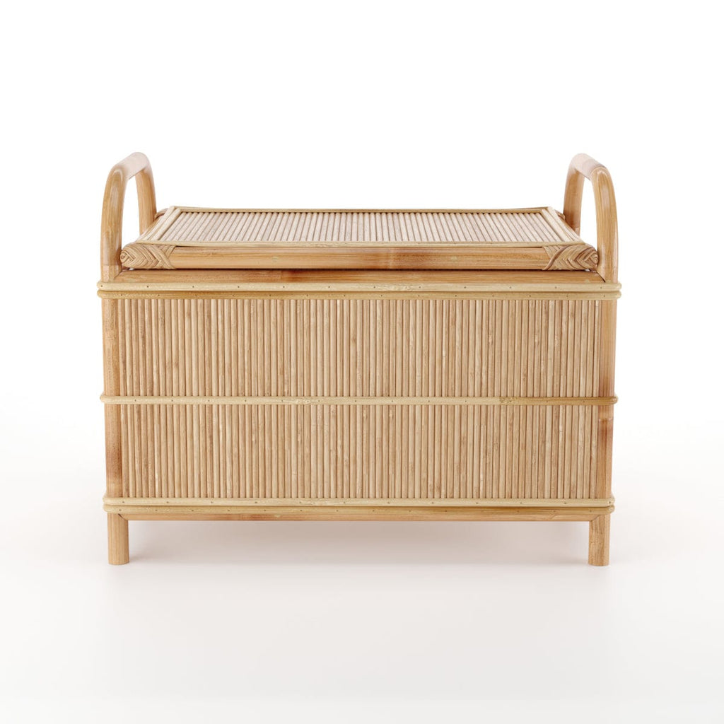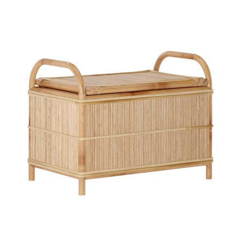 Die langlebige, natürliche und nachhaltige Rattan-Konstruktion der Wooden Storage Trunk and Bench garantiert Langlebigkeit, während das ästhetische Design das Ambiente jedes Raumes aufwertet. Perfekt für stilvolle und praktische Aufbewahrungslösungen.